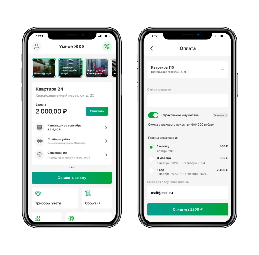 Система управления жилыми комплексами Группы Голос построена на базе платформы «Умное ЖКХ». Мы стараемся всегда выполнять пожелания наших клиентов, поэтому по запросу девелопера провели интеграцию с РГС. Теперь в мобильном приложении жители могут застраховать недвижимость, находящуюся в собственности — квартиру, апартаменты или коммерческое помещение. Для этого не нужно никуда идти – достаточно активировать подписку, выбрать условия страхования и внести оплату. Страховой полис и чек придут на электронную почту.