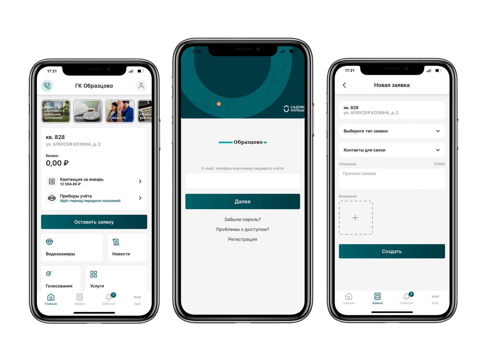 Единая платформа для управляющей компании застройщика «Садовое кольцо» включает в себя мобильные приложения и веб-кабинеты для жителей и сотрудников УК.