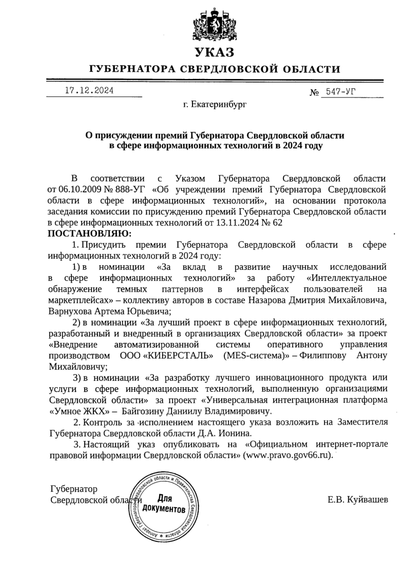 Рады сообщить, что наша цифровая платформа для управления домами «Умное ЖКХ» стала победителем в номинации «Разработка лучшего инновационного продукта или услуги в сфере информационных технологий, выполненного организациями региона».